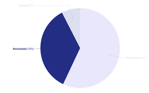 Como podemos notar, o “sim” prevaleceu de forma esmagadora, com 92,45% do total. Além do mais, 57% dos participantes votaram para uma total deschedule, e 35% para o reschedule, conforme podemos visualizar no gráfico abaixo.