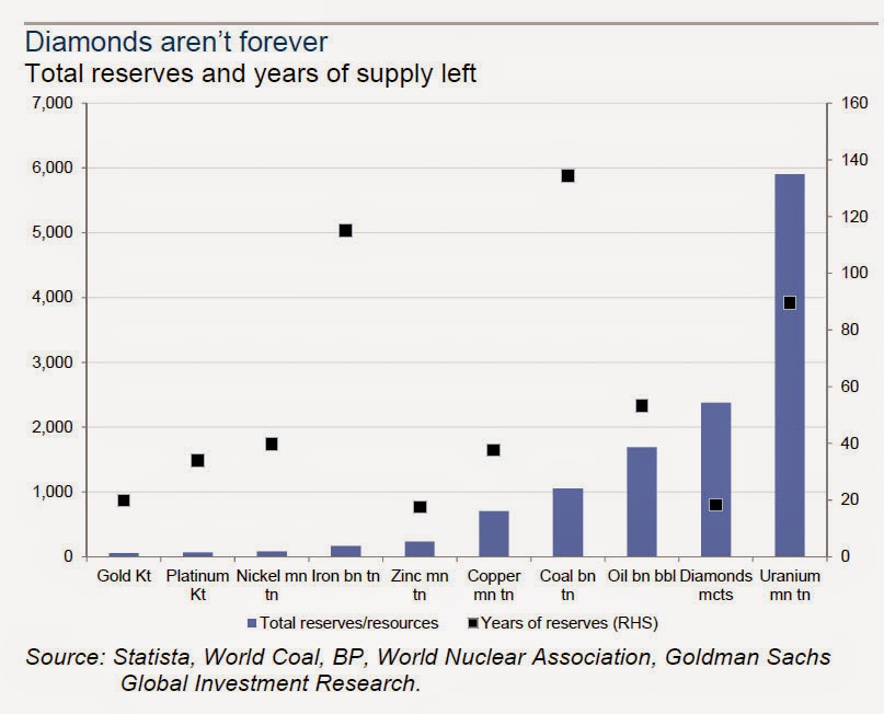Relatório da Goldman Sachs mostra que há somente 20 anos de produção de ouro das reservas já descobertas e mineráveis e que atingimos o pico de produção em 2015.