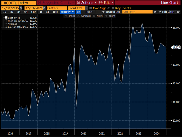 Conforme gráfico abaixo, a demanda por petróleo na China manteve-se em trajetória de alta nos últimos anos, com uma recente estabilização. Parte desse consumo se destina à produção para exportação, mas é importante destacar que a narrativa de que os veículos elétricos reduzirão significativamente o uso de petróleo não se sustenta — especialmente considerando a alta intensidade de uso de petróleo na fabricação desse tipo de veículo.