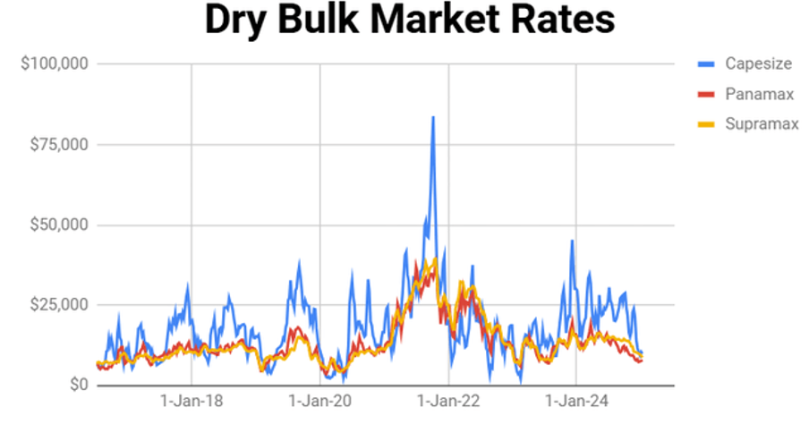 O ano passado mostrou ser um desses períodos de alta volatilidade, com o aumento das exportações de bauxita da Guiné demandando mais embarcações — e, consequentemente, comandando um aumento nos preços dos fretes —, seguido pela normalização do trânsito no Canal do Panamá, que “desafogou o trânsito” e melhorou as condições para os navios. O grande evento deste ano deve ser o começo da mineração em Simandou, na Guiné, no final do ano, que será a maior mina de minério de ferro do mundo e demandará, para si só, uma pequena frota de bulkers para transporte de sua produção.