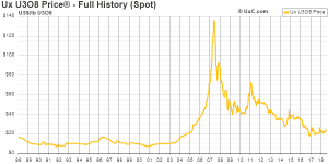 The production of uranium in 2018 is estimated to be around 150million pounds (so far, not accounting for further reductions) and the demand, which is quite predictable, should be around 175million pounds. The difference is acquired through secondary suppliers (and inventory being drowned).